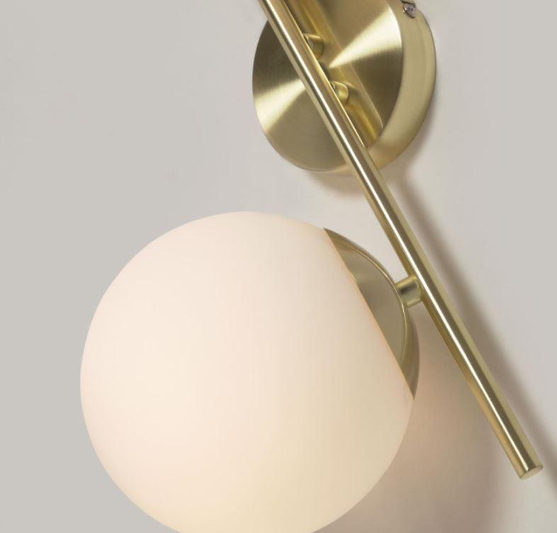 Aplica 5061/2, metal crom sau auriu, 2xE27, globuri din sticlă alb mat. Design modern, potrivit pentru living, dormitor sau baie.