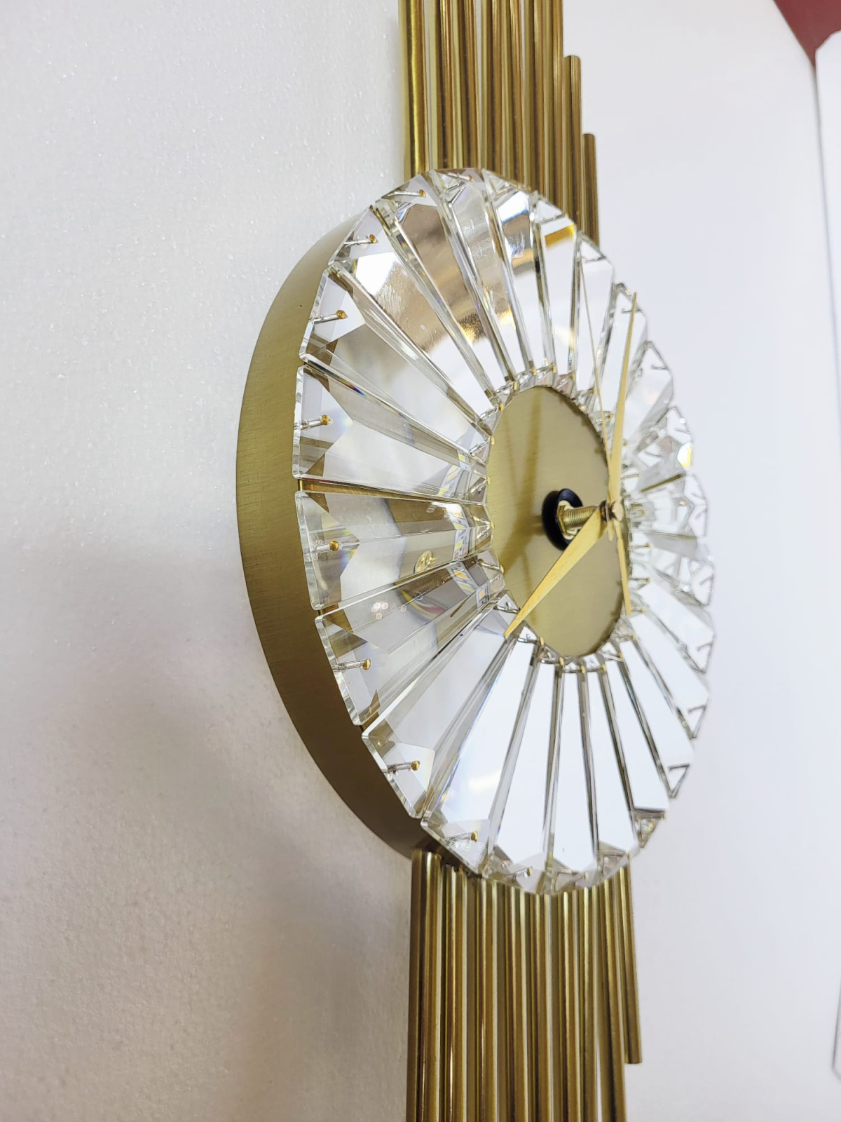 Descoperă eleganța și funcționalitatea într-o singură piesă cu ceasul și aplica de perete LED model 2561. Realizat din metal auriu cu detalii din sticlă, acest model aduce un plus de rafinament în decorul casei tale, fiind atât un obiect practic, cât și unul decorativ.