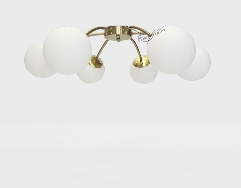 Globurile din sticlă albă mată asigură o lumină difuză, confortabilă pentru ochi, fiind ideale pentru iluminarea zilnică. Designul său compact și montajul direct pe tavan o fac perfectă pentru încăperi cu spațiu limitat pe verticală.