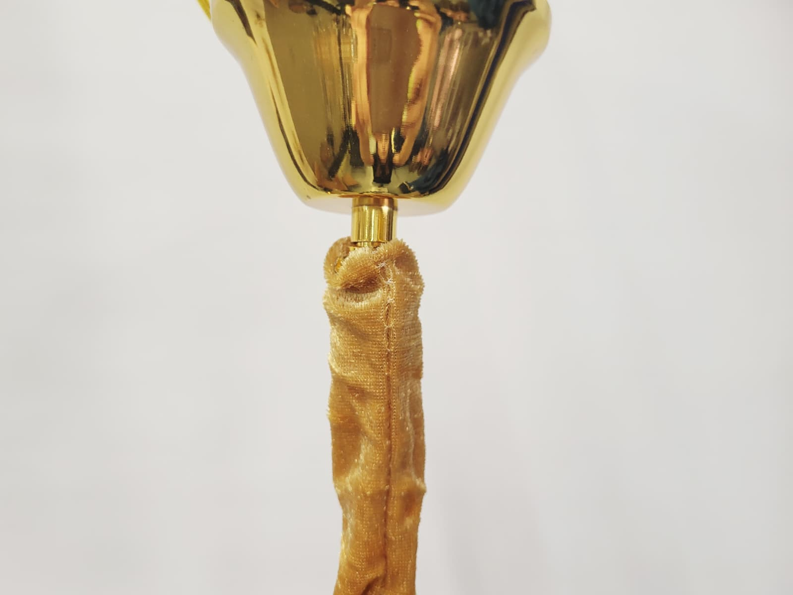 Cu un diametru de 25 cm, lampa este ideală pentru spații de dimensiuni variate, adăugând un accent sofisticat fără a ocupa prea mult loc. Lanțul de prindere are o lungime de 50 cm și poate fi ajustat pentru a se potrivi perfect înălțimii camerei. Cablul este mascat elegant de un înveliș catifelat, ce adaugă un plus de stil și rafinament.