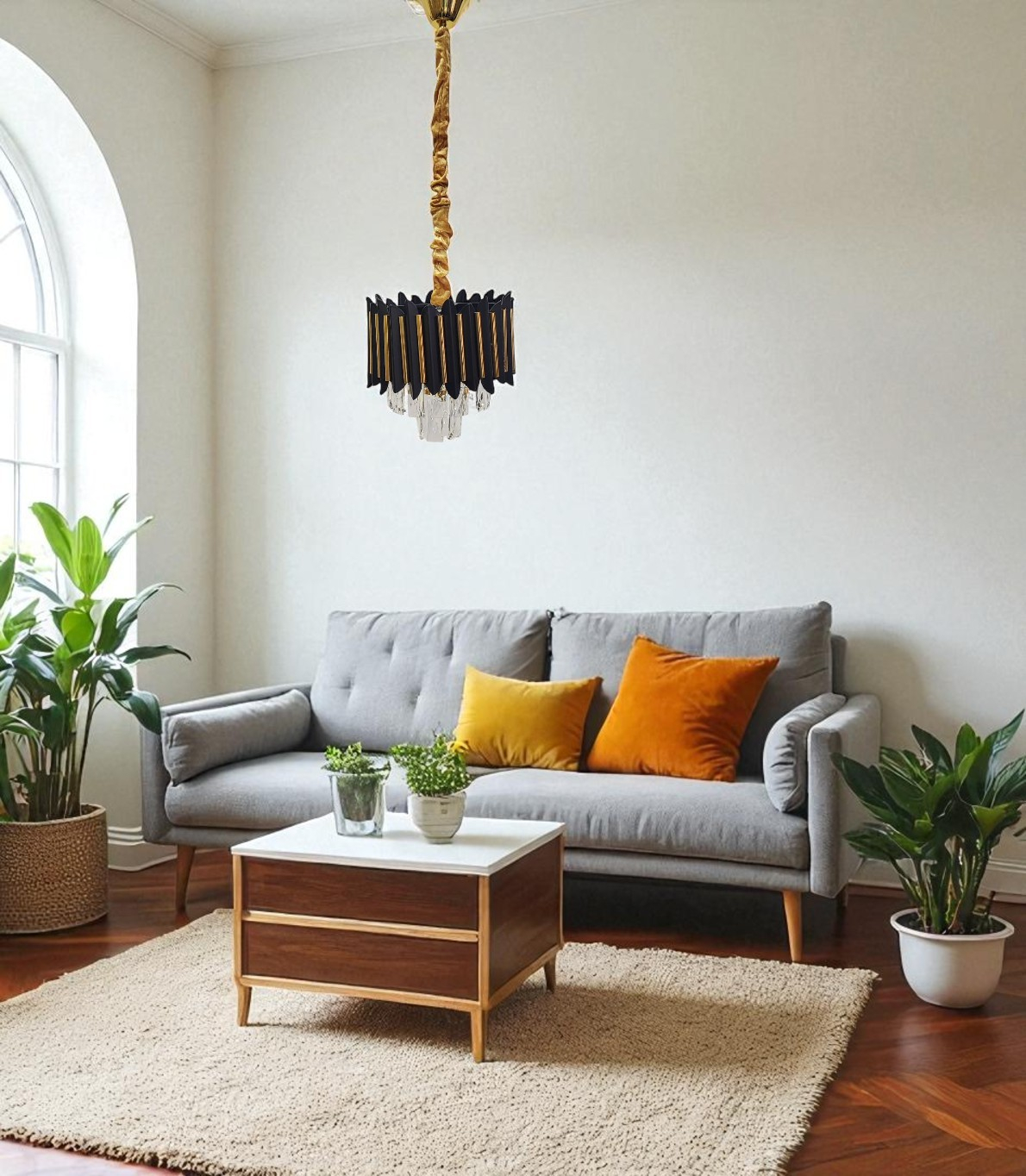 | Material | Metal (negru și auriu) + sticlă cristal imitatie K9 |