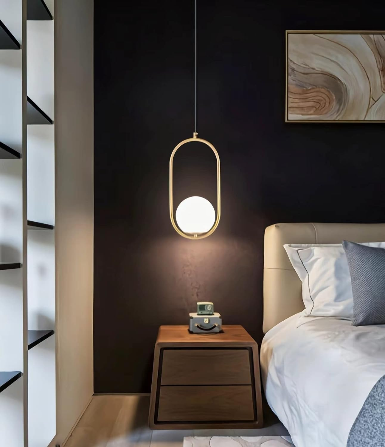 Forma ovală conferă un aer sofisticat și minimalist, iar lumina difuză oferită de globul alb creează o atmosferă plăcută și caldă. Ideal pentru living, sufragerie, hol sau birou, pendulul aduce un plus de stil fără a încărca vizual spațiul.