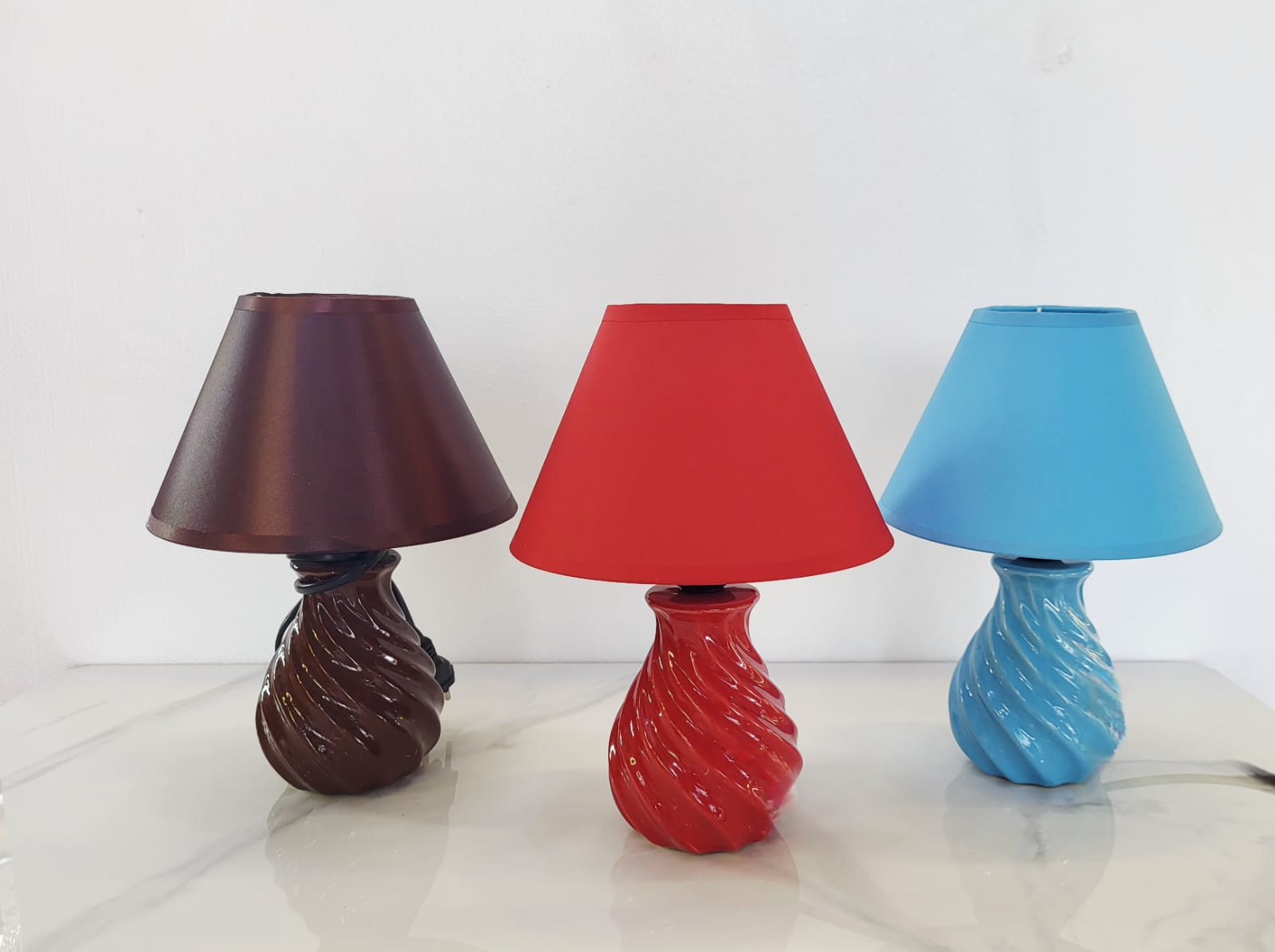 Disponibilă în trei variante de culoare – roșu, maro și albastru –, veioza 095 îți permite să alegi nuanța care se potrivește cel mai bine cu decorul tău. Lumina este difuzată uniform prin abajur, creând o ambianță caldă și relaxantă, ideală atât pentru dormitor, cât și pentru hol, dressing sau camere de hotel.